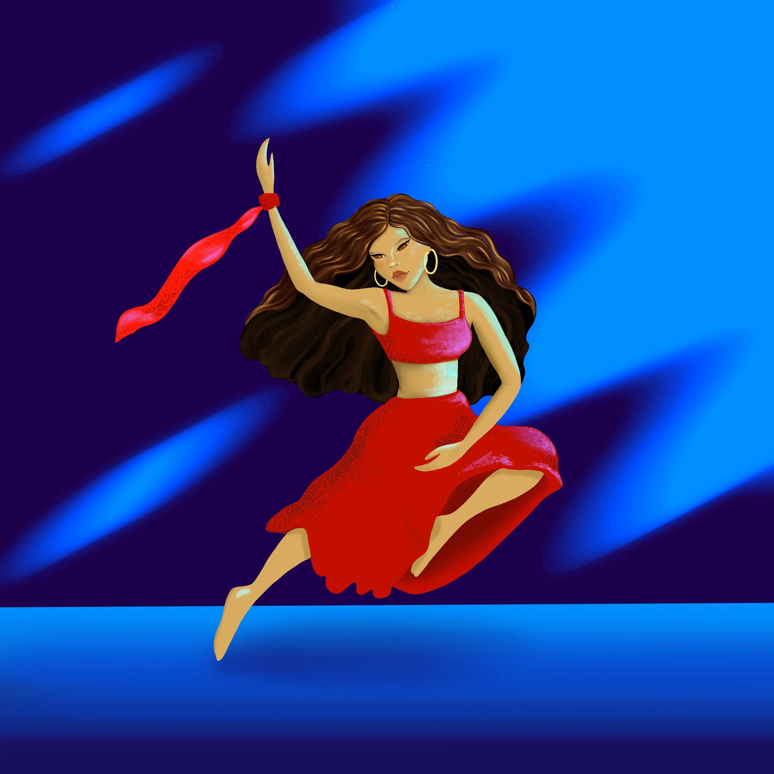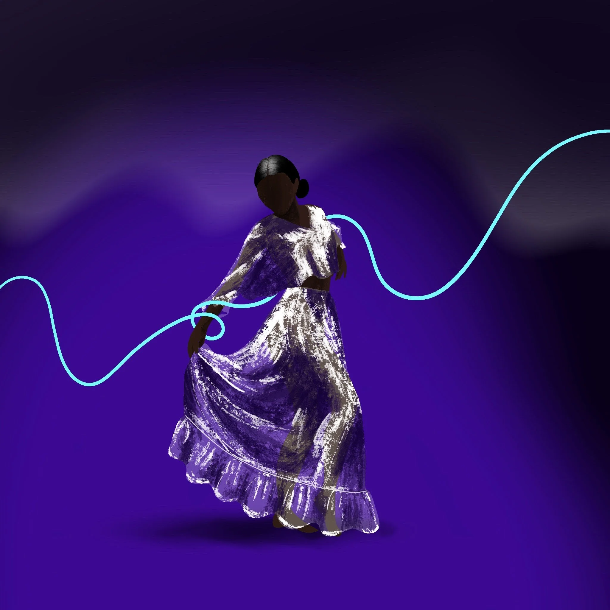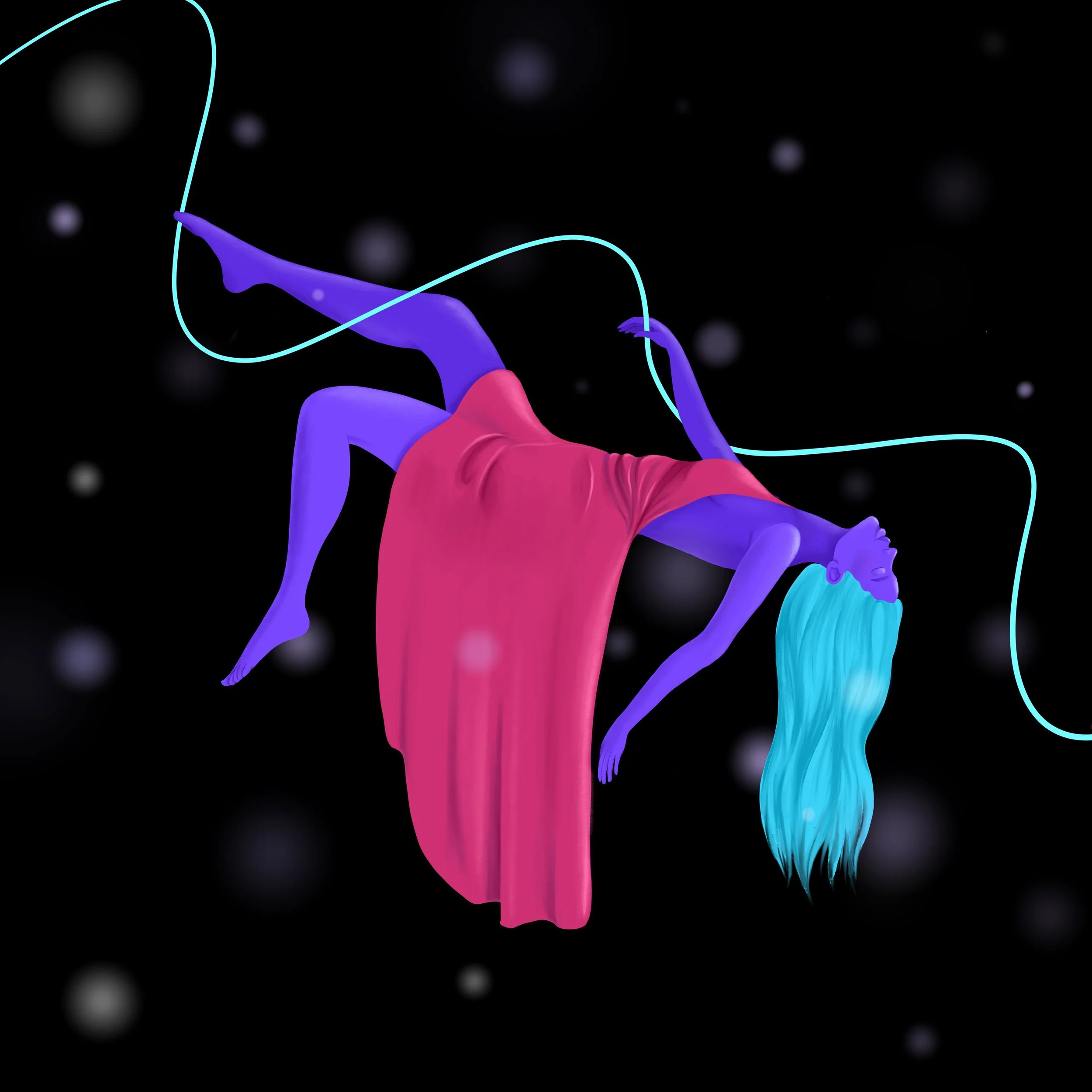 Digital Illustration. A collection of dynamic dancing figure illustrations using Procreate, incorporating dreamy movements and flowing lines.